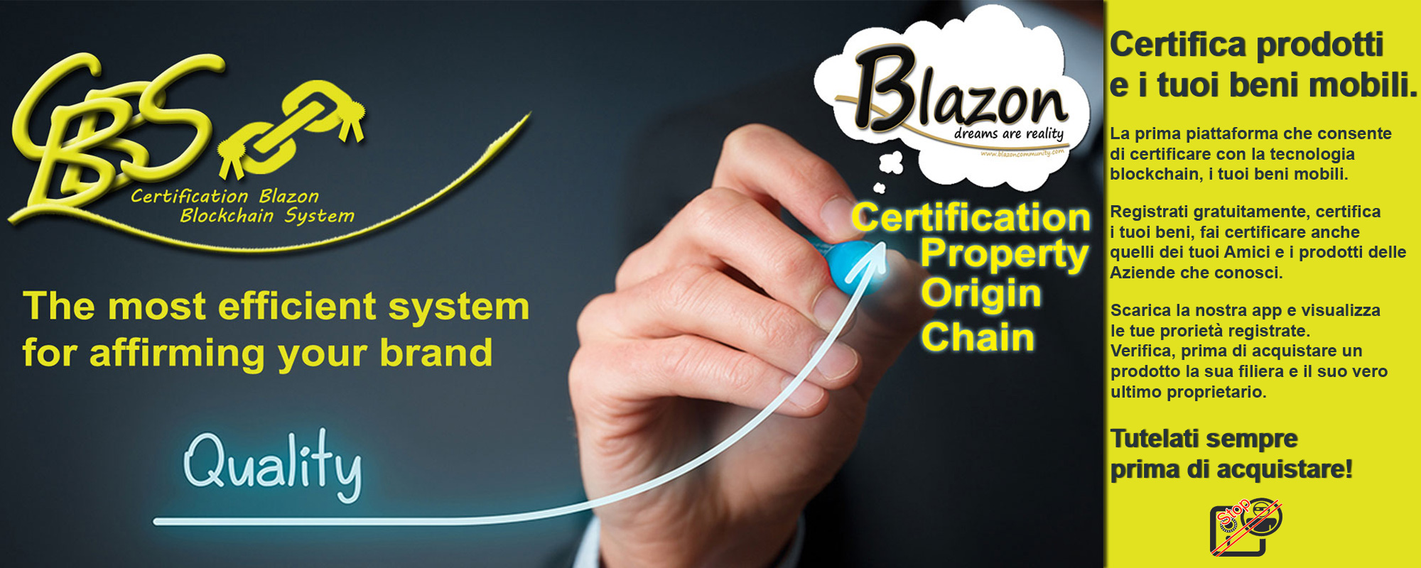 The first platform that allows to certify with technology blockchain, your mobile prorpities. Always protected before buying!