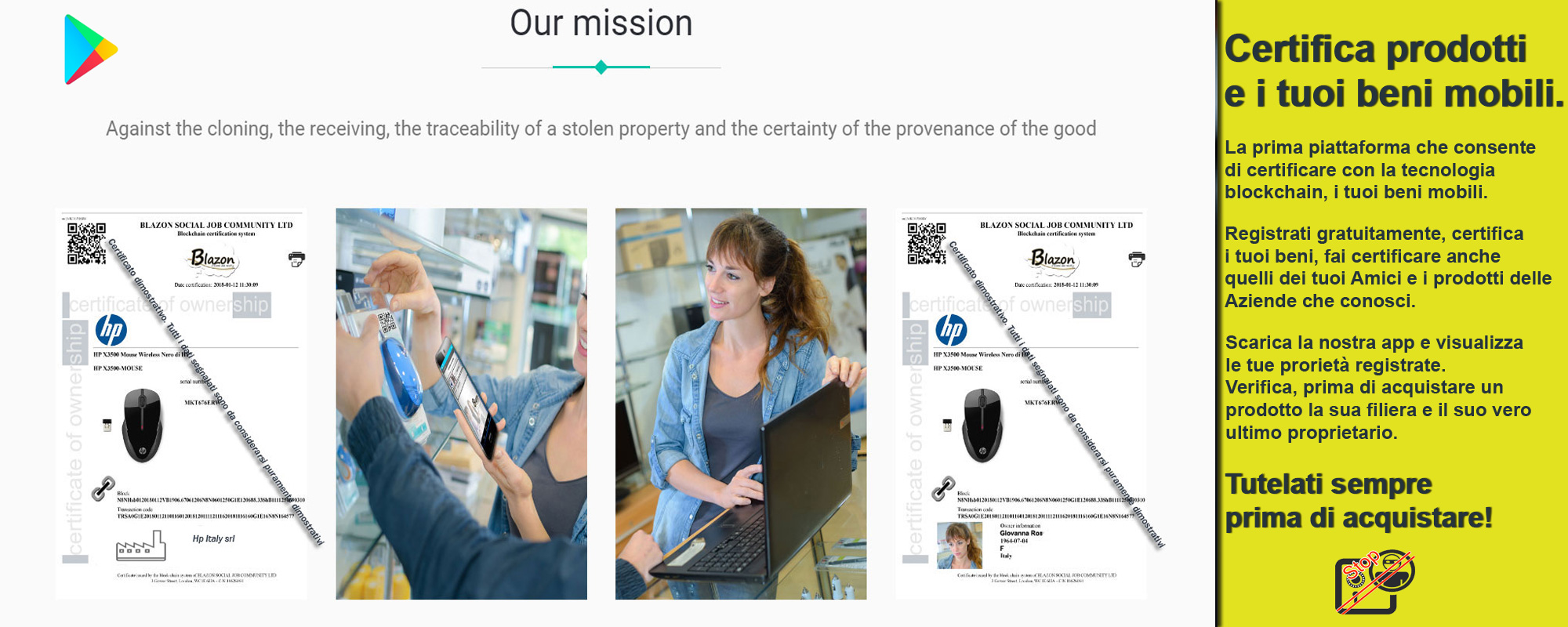 Always check the certificate of origin and property. Download the app from the Play Store under Blazon Certification.